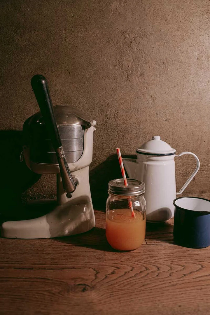 Used item. Overall exterior good conditions as shown in the photos. The juicer has some wear from age/use but is in good condition. Would be great for a collection, period decorating or to use.