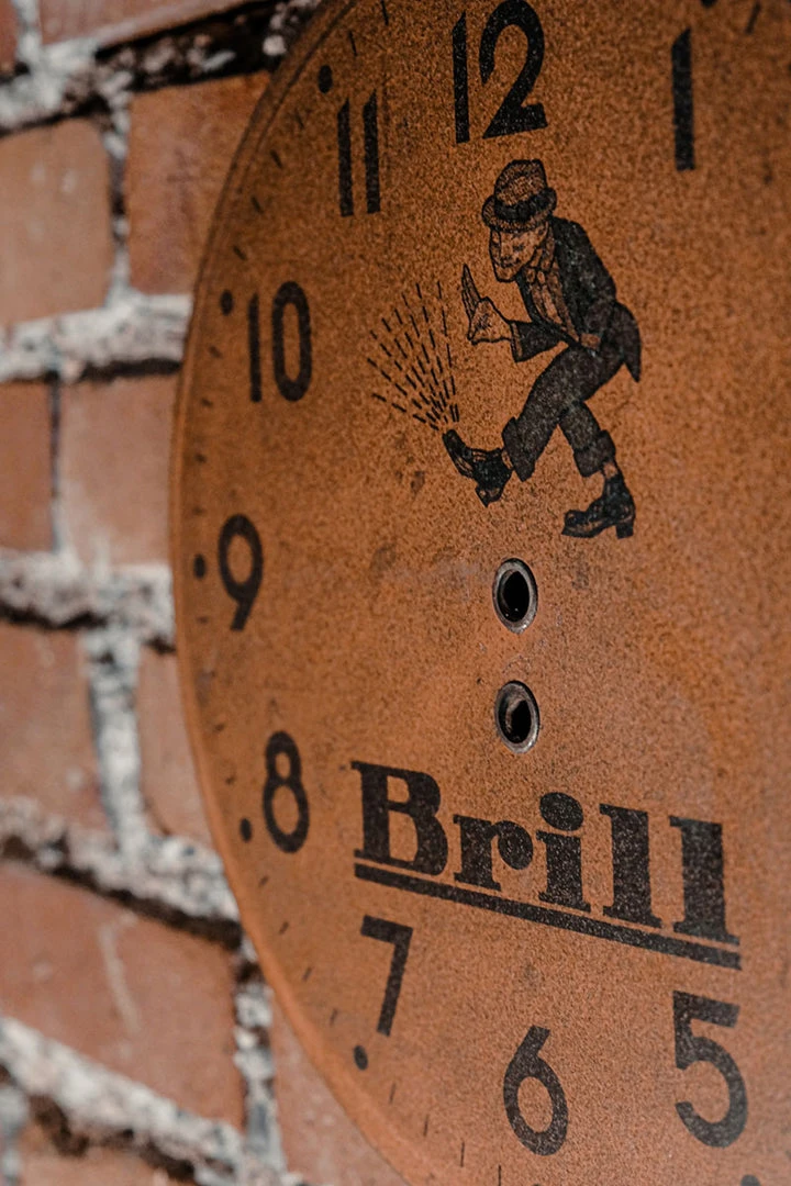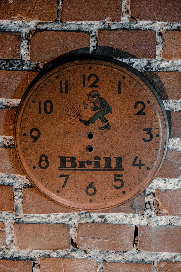 Brill – 1940s wall clock face in lithographed tin.
