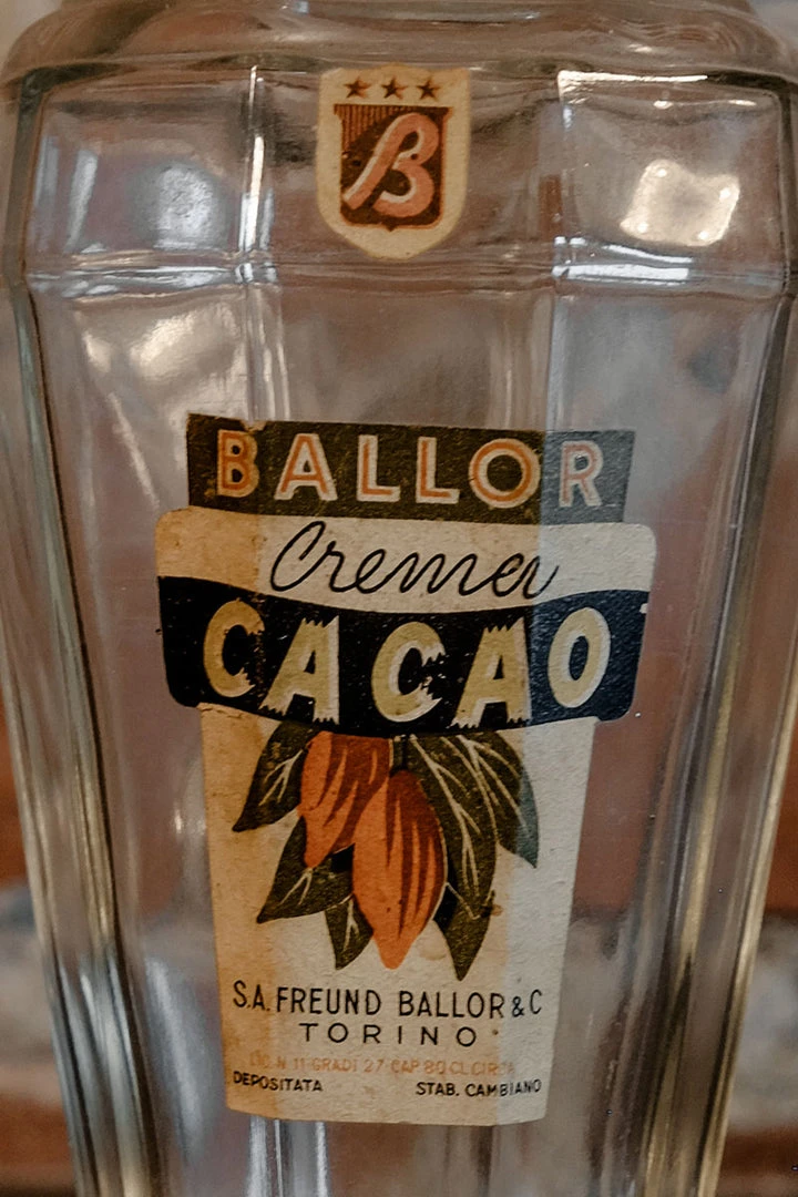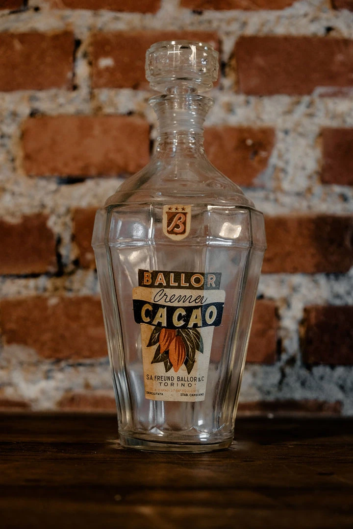 Early ‘900 Art Deco Crema Cacao Freund Ballor Glass Bottle Torino (Italy)