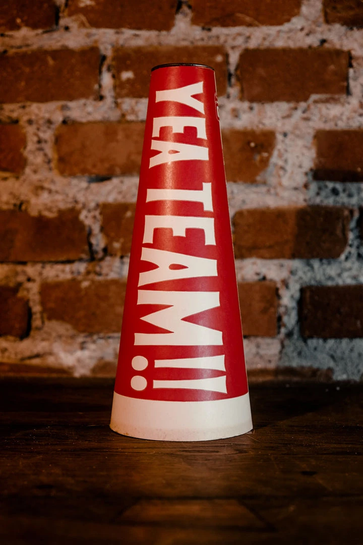 It was a stadium popcorn holder, you can remove the cardboard lid at the bottom to turn it into a megaphone.