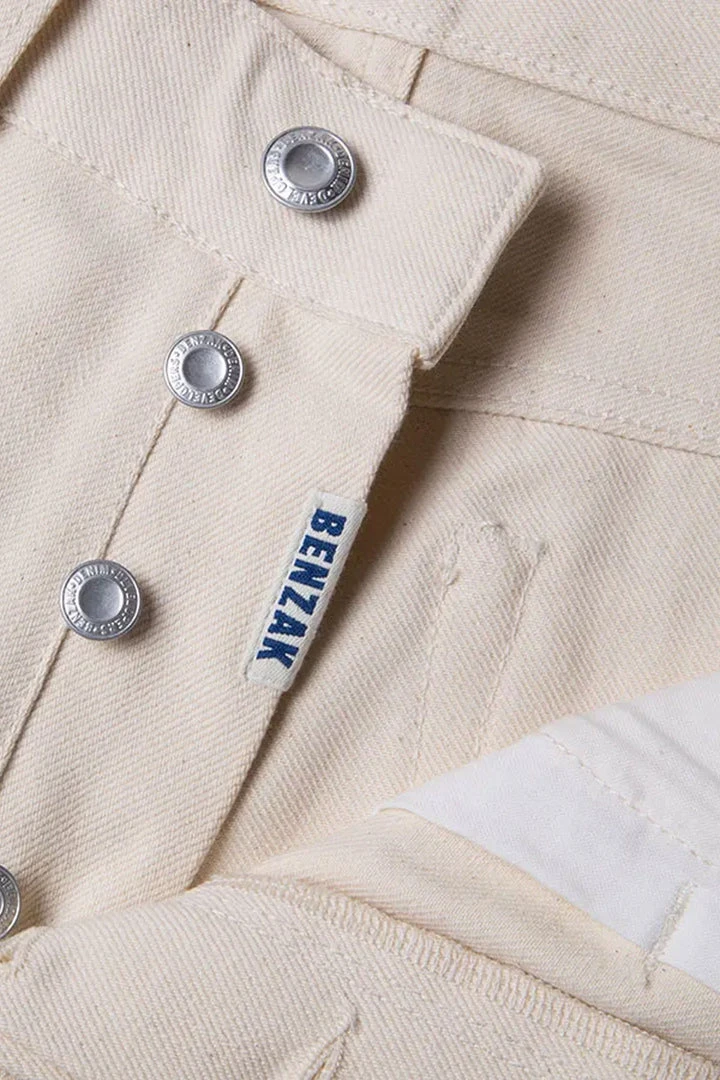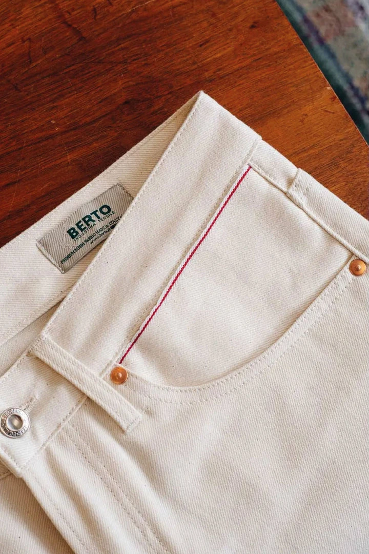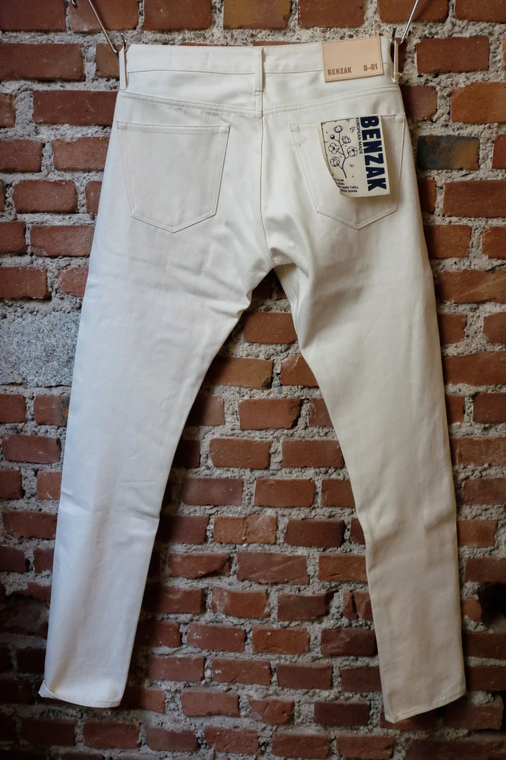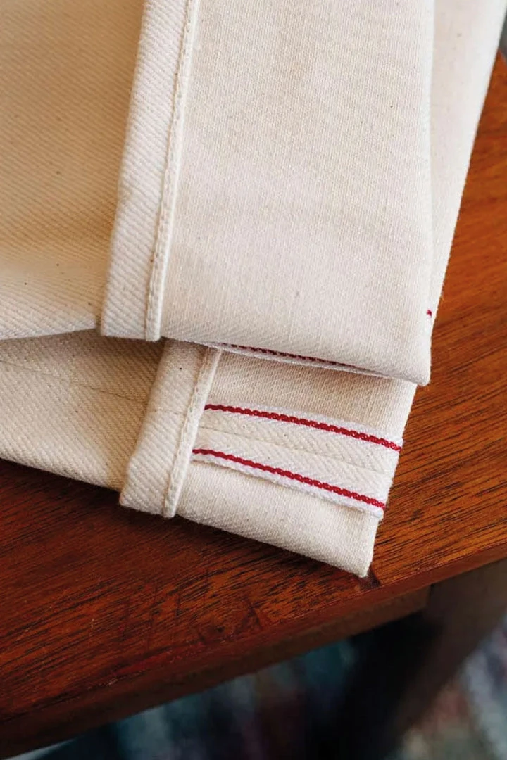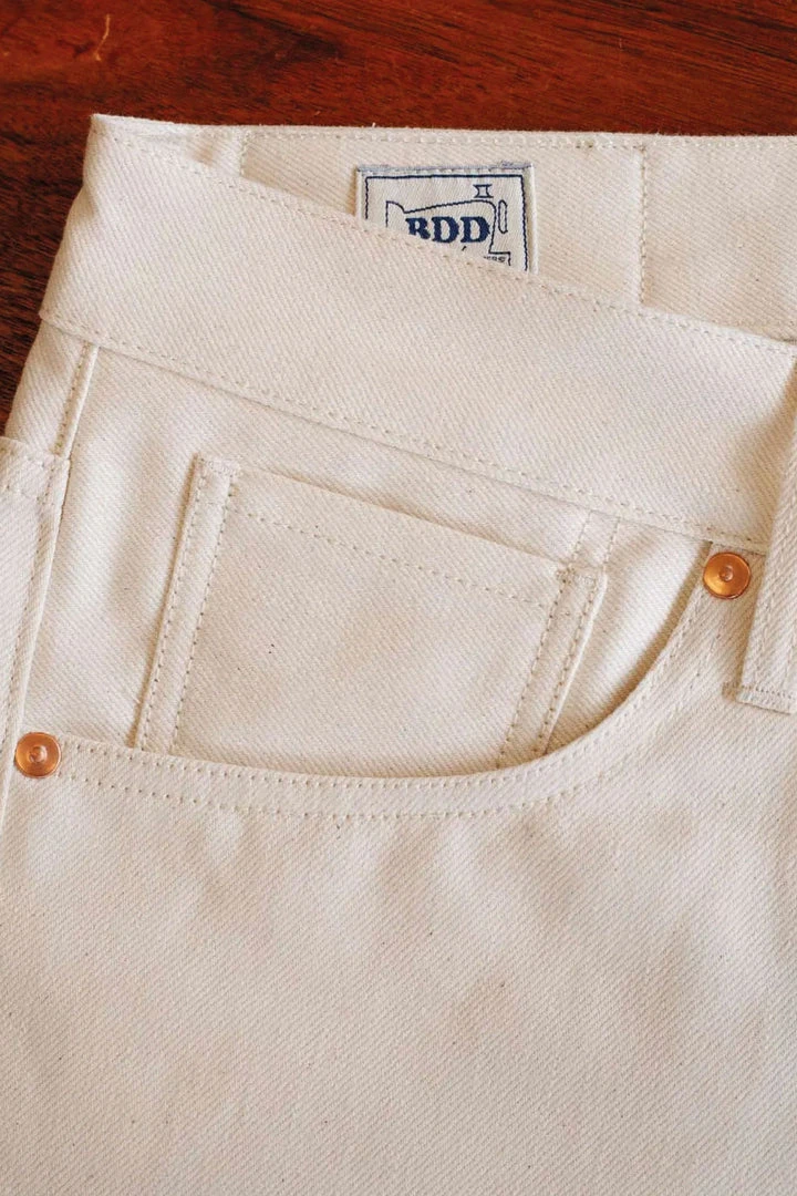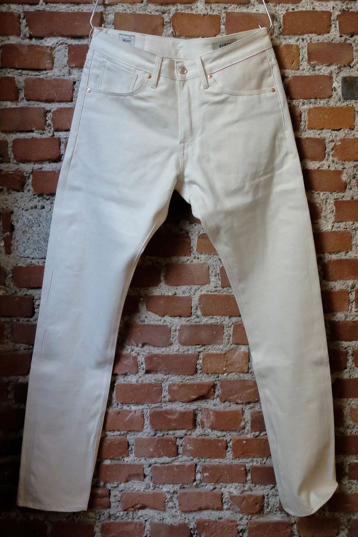 ECRU SELVEDGE fabric is a fine 12oz. right-hand 100% sanforized cotton fabric with a red selvedge ID. So, not only the color is light, but also the fabric itself which makes it perfect Summer jeans. The fabric is woven with undyed yarns, and due it’s the natural production process, the denim is unlike any other undyed fabrics.