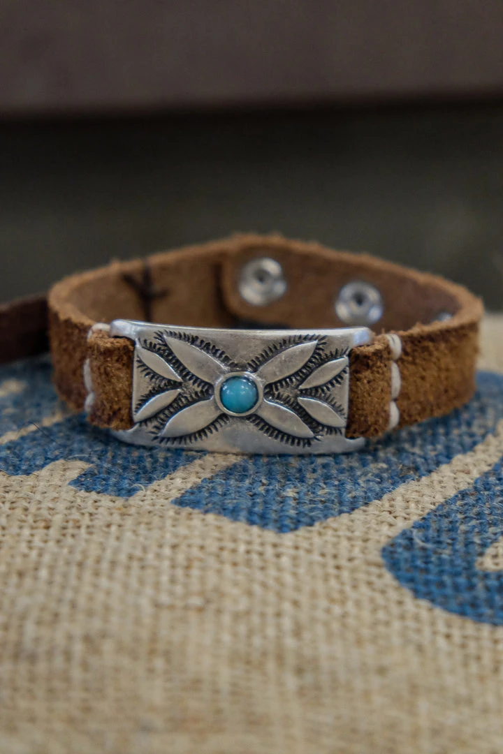 New Alberto Luti – Turquoise Bracelet In Vintage Suede Leather