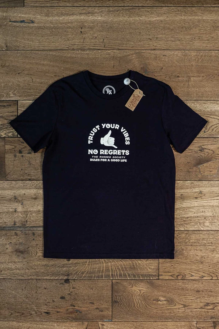 Trust Your Vibes, No Regrets is one of the rules for living a good rugged life.