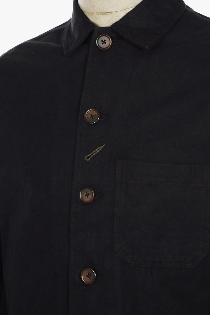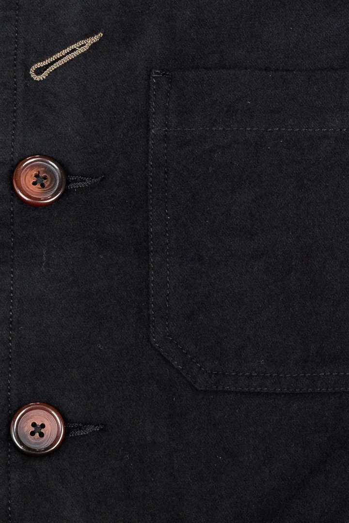 The ‘Bakers Chore Jacket’ features a five-button front, three patch front pockets, an internal pocket, and our classic angled buttonhole. Nebraska cotton has a compact weave, with a soft brushed surface similar to moleskin. This allows it to hold its shape well.